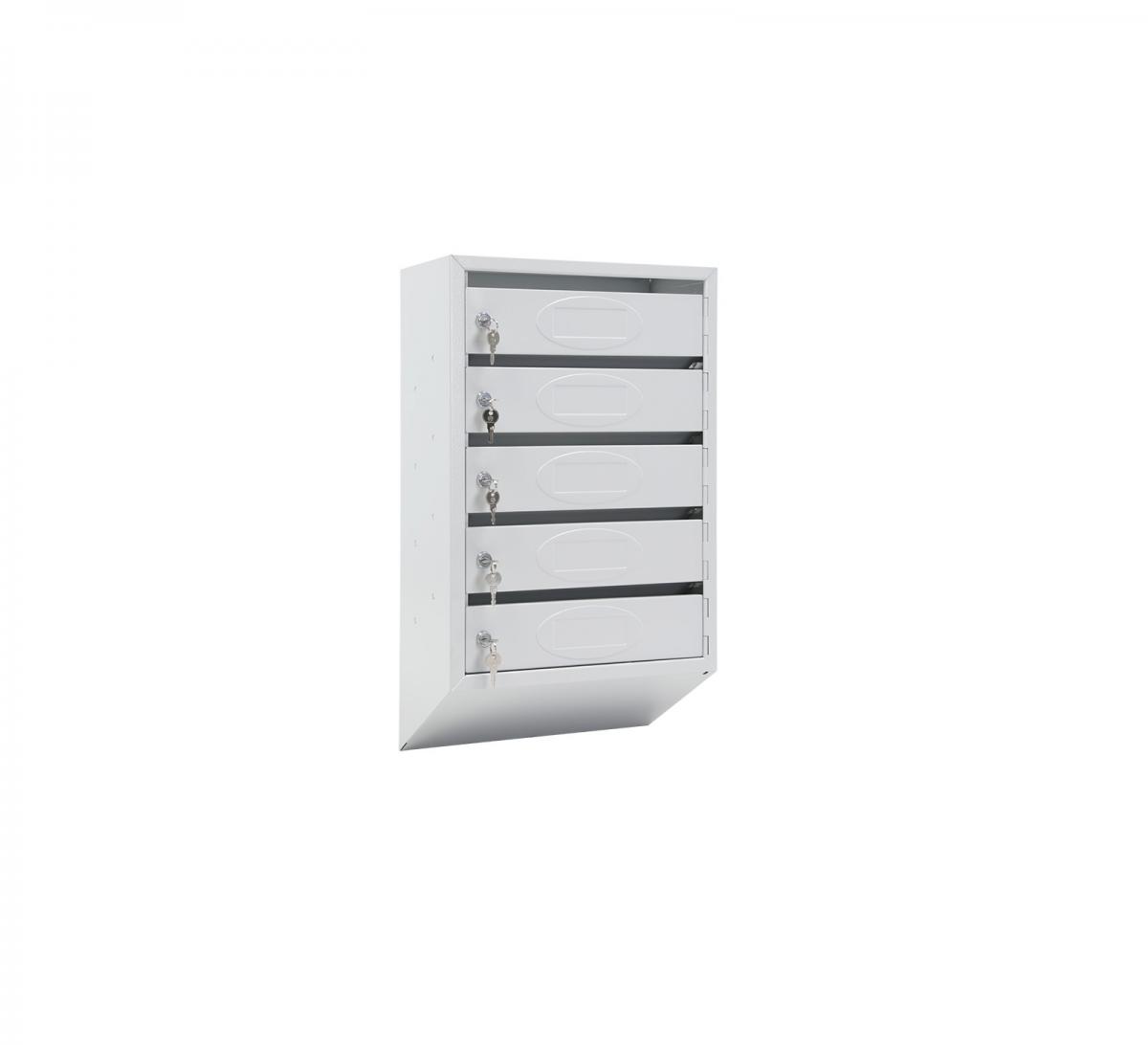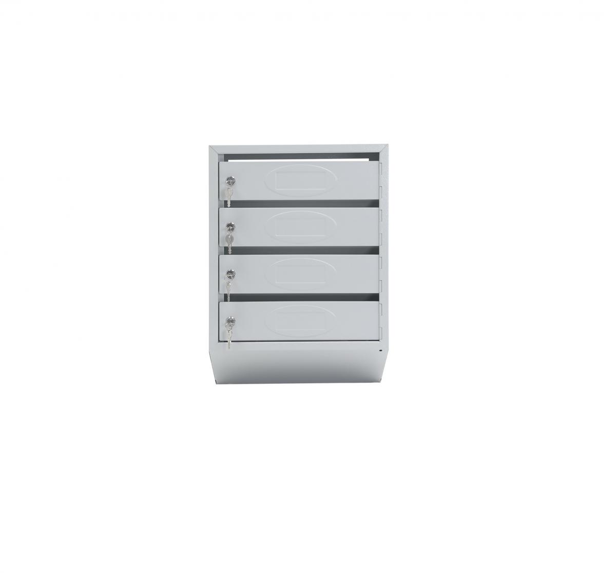 Металлический почтовый ящик на 4 квартиры, ящик оснащен задней сплошной стенкой и комплектом замков с ключами.