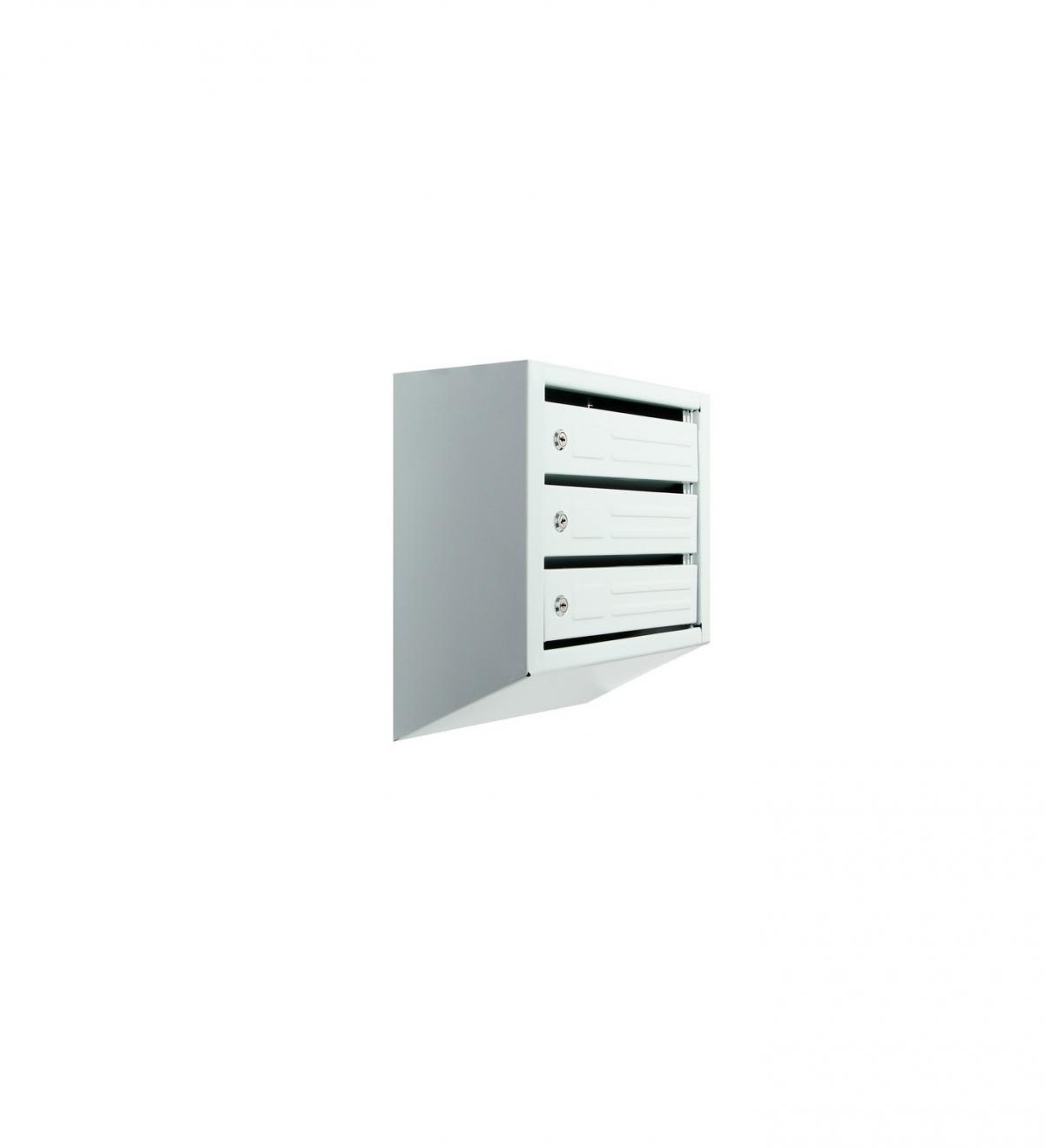 Почтовый многосекционный ящик на 3 квартиры, оснащен комплектом замков с ключами.