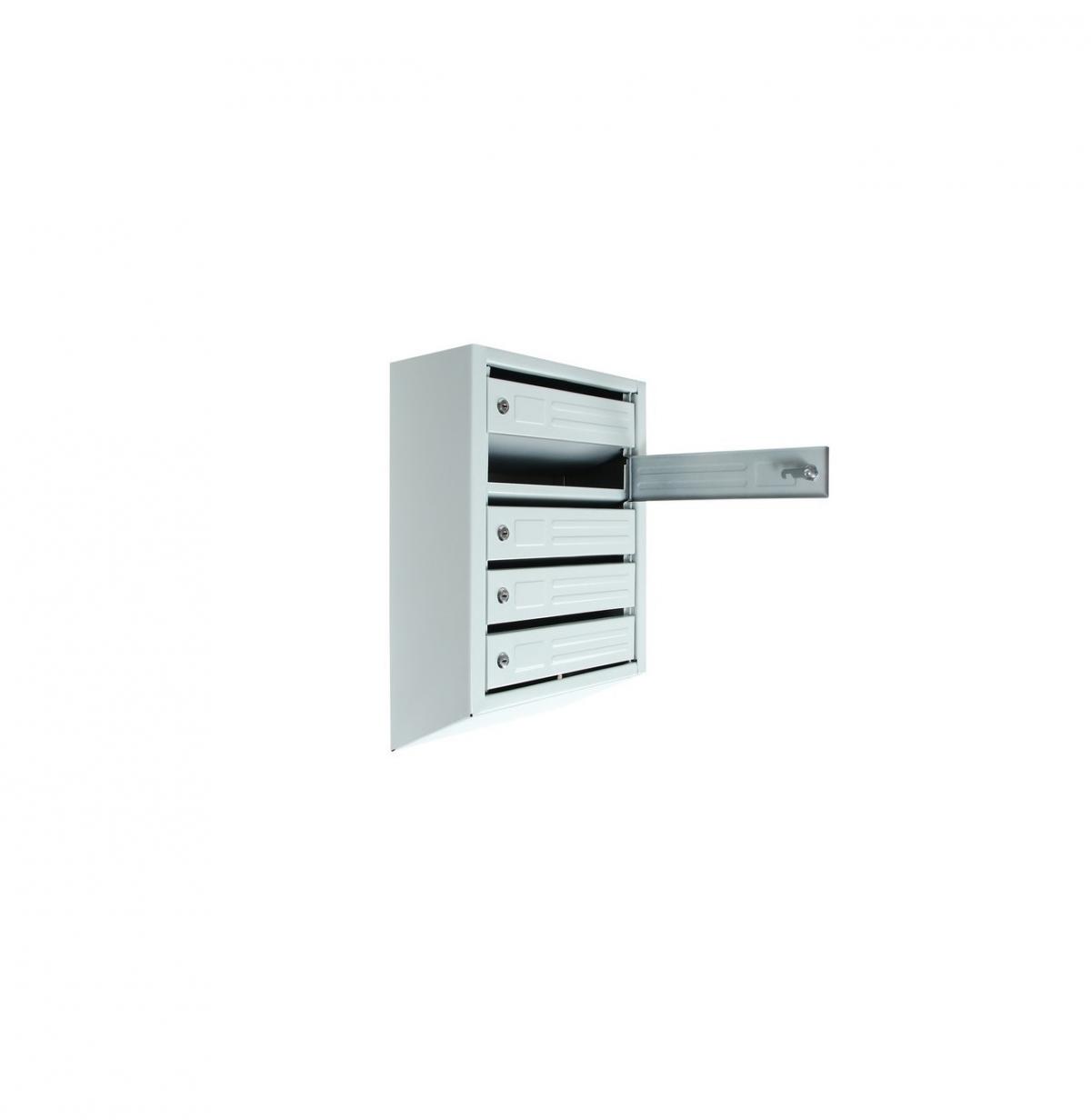 Почтовый многосекционный ящик на 5 квартир, оснащен комплектом замков с ключами.