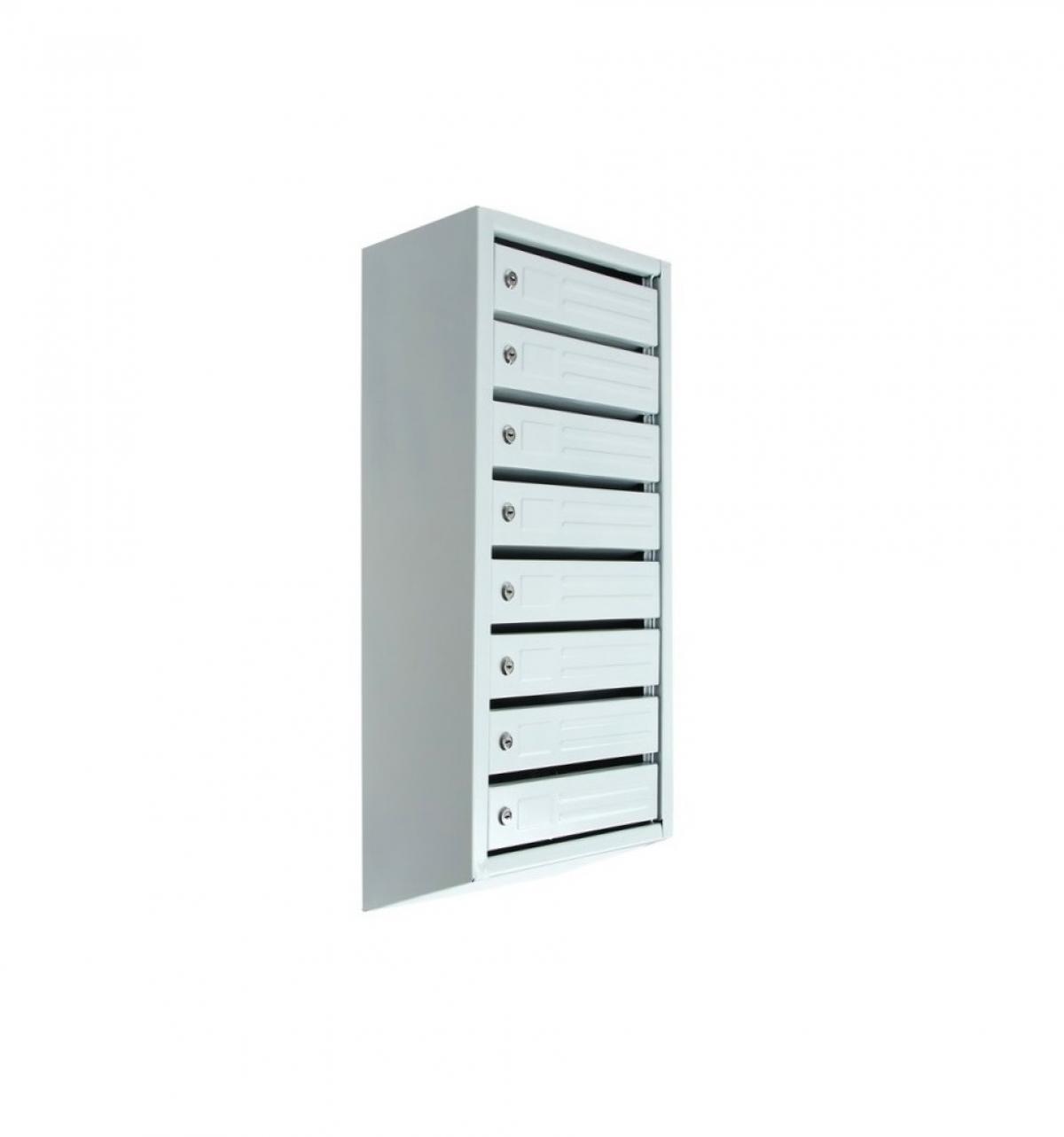 Почтовый многосекционный ящик на 7 квартир, оснащен комплектом замков с ключами.