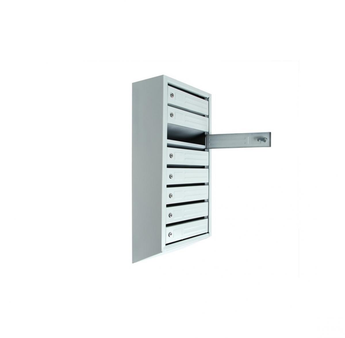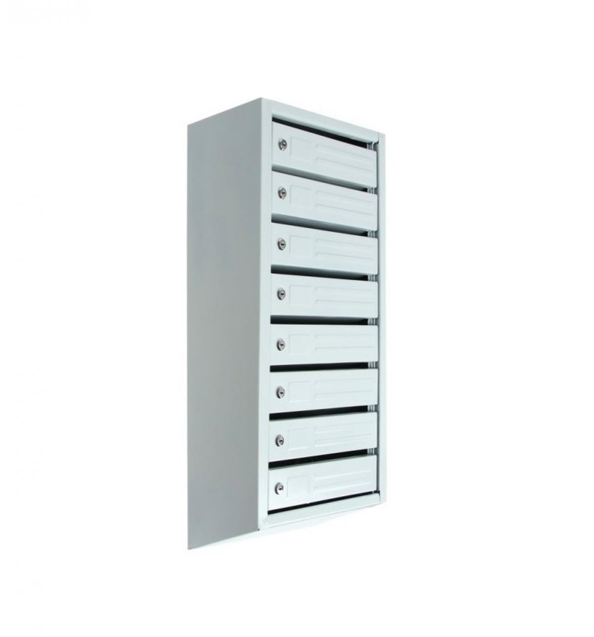 Почтовый многосекционный ящик на 8 квартир, оснащен комплектом замков с ключами.