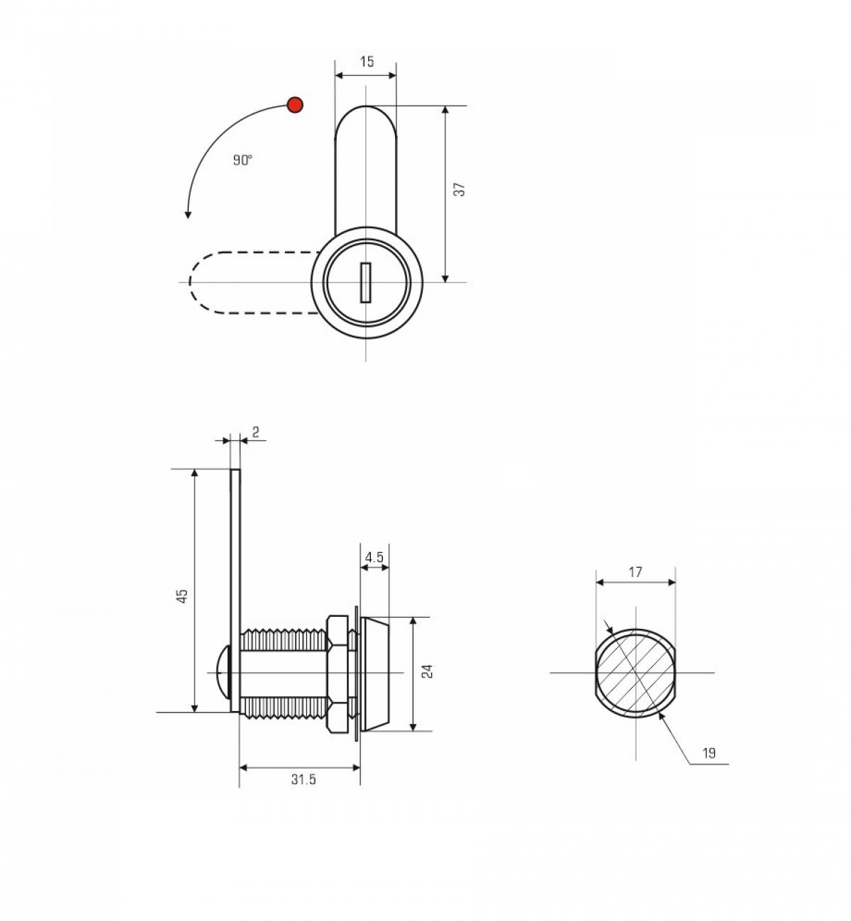 Замок + 2 ключа, гайка, шайба, ответная планка, стопорная пластина |
