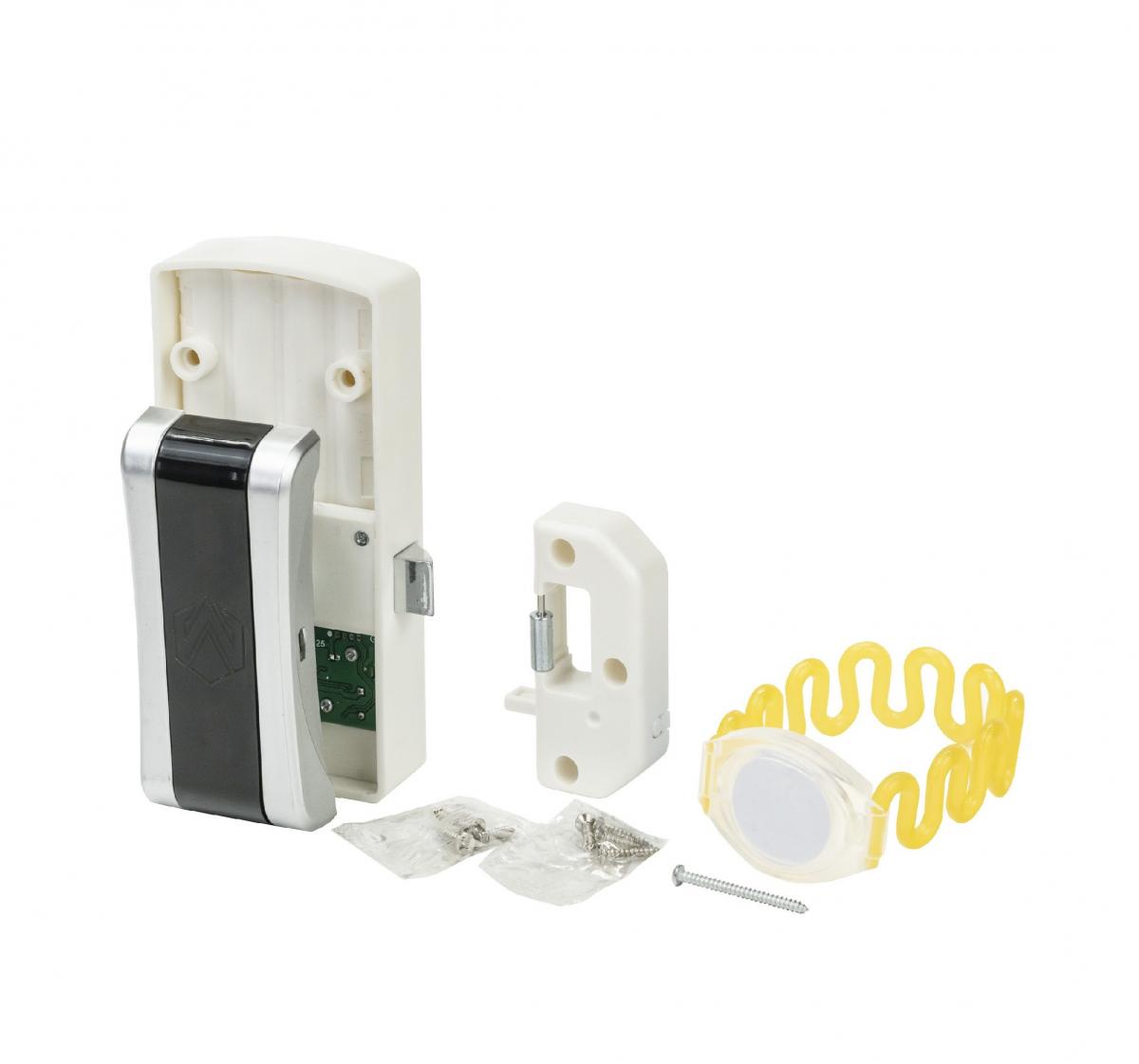 Удобные и стильные электронные замки для шкафчиков раздевалок ЛДСП. Простой монтаж позволяет установить данные замки за короткий промежуток времени. Программирование замка выполняется с помощью мастер-ключа (браслета, брелока или карты). Питание замка от 4-х «пальчиковых» батареек типа АА. В случае полного разряда батареек, на внешней панели находится разъем для подключения блока аварийного питания. При прикладывании ключа замок откроется и через 5 сек перейдет в закрытое состояние. Чтобы закрыть шкафчик достаточно захлопнуть дверцу.