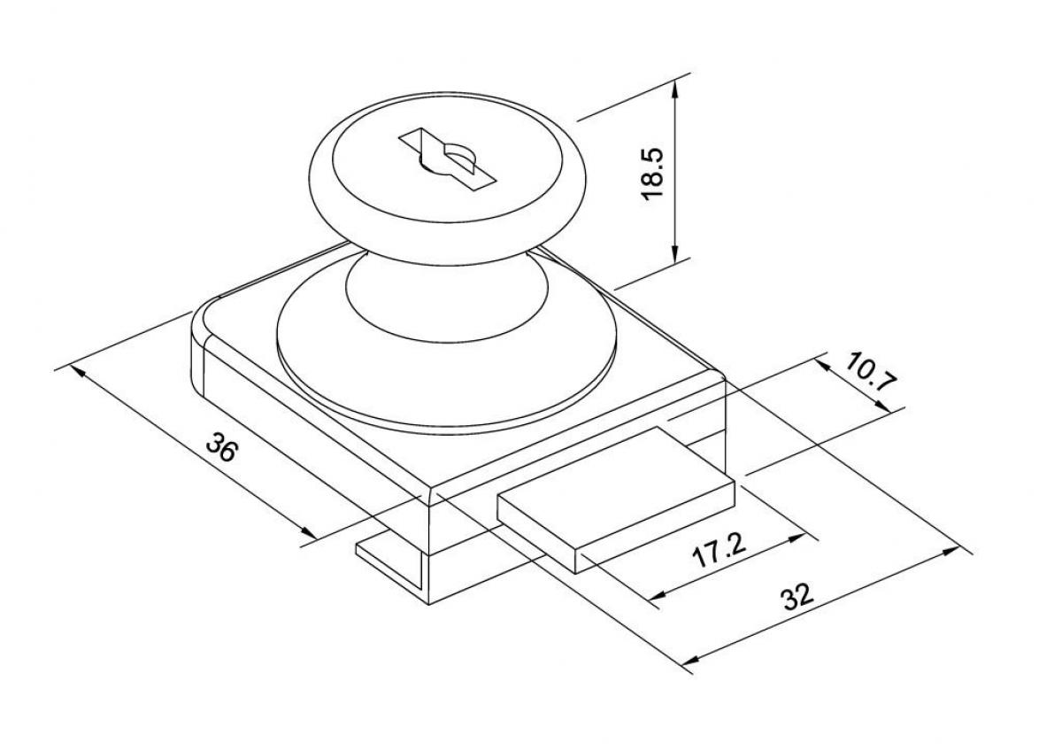 Замок витрины мебельный 805 разработан для установки на внутренние, накладные дверцы.