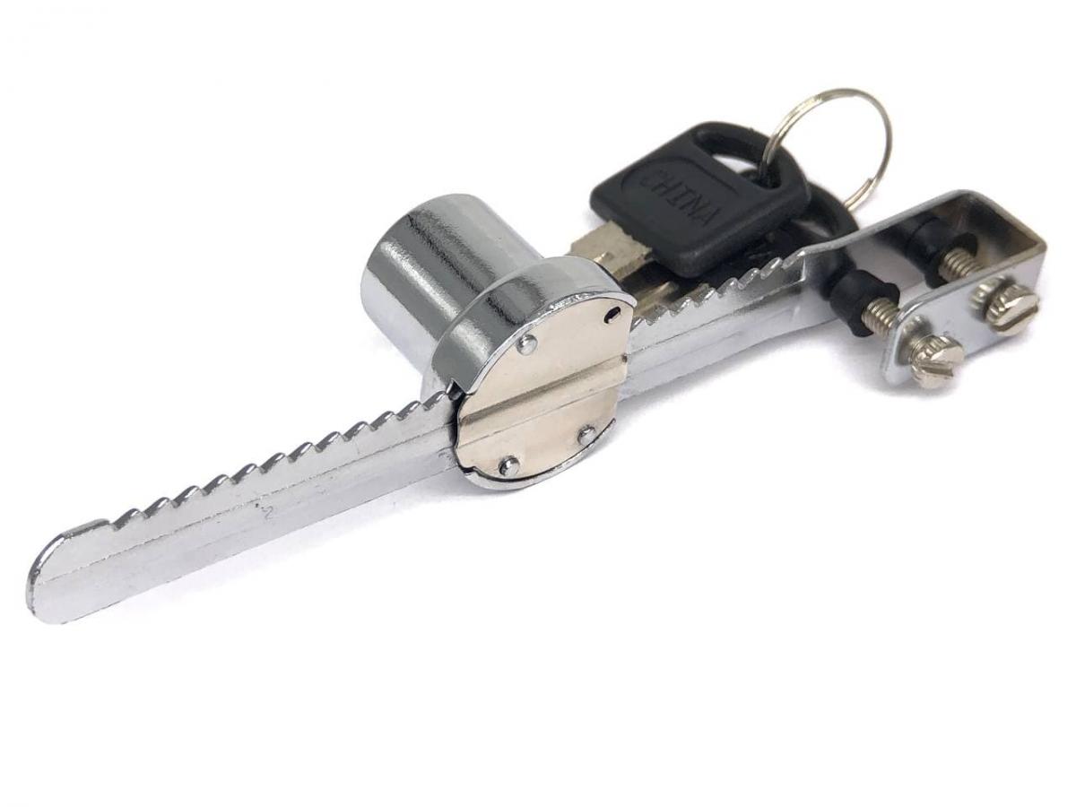Замок реечного типа, разработанный для раздвижных конструкций из стекла. Специальная планка фиксируется на боковой части внутреннего стеклянного полотна с помощью винта, не требуя предварительного сверления. Подходит для стекла толщиной 5 мм. Замок устанавливается на планку и сдвигается до соприкосновения с краем внешнего подвижного стекла. При повороте ключа замок отсоединяется от планки, двигаясь в обратную сторону, тем самым давая возможность стеклам свободно перемещаться.